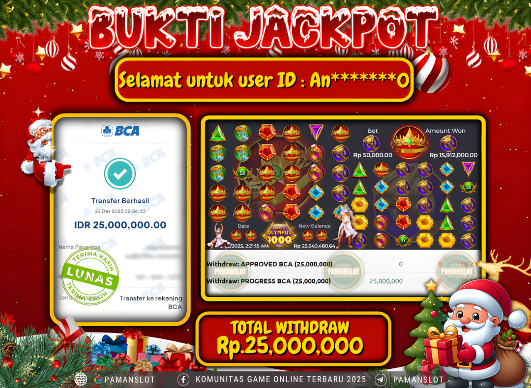 Berhasil memenangkan Rp25,000,000 dalam permainan Game Gates of Olympus 1000 Pamanslot! Setelah mengisi formulir withdraw, pihak Pamanslot langsung memproses transaksi dan dana sudah cair ke rekening pemenang. Bukti pembayaran 100% VALID dan langsung diperoleh dari tanda transfer bank yang dituju.