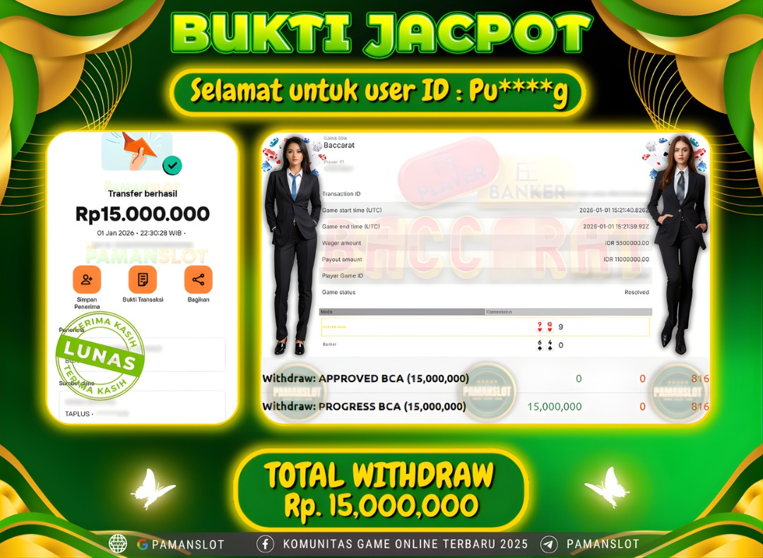 Berhasil memenangkan Rp15,000,000 dalam permainan Baccarat Pamanslot! Setelah mengisi formulir withdraw, pihak Pamanslot langsung memproses transaksi dan dana sudah cair ke rekening pemenang. Bukti pembayaran 100% VALID dan langsung diperoleh dari tanda transfer bank yang dituju.