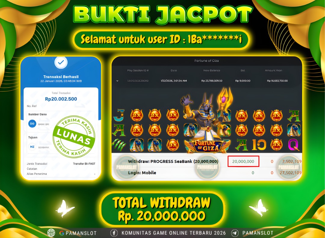 Berhasil memenangkan Rp20,000,0000 dalam permainan Game PP - Fortune of Giza Pamanslot! Setelah mengisi formulir withdraw, pihak Pamanslot langsung memproses transaksi dan dana sudah cair ke rekening pemenang. Bukti pembayaran 100% VALID dan langsung diperoleh dari tanda transfer bank yang dituju.